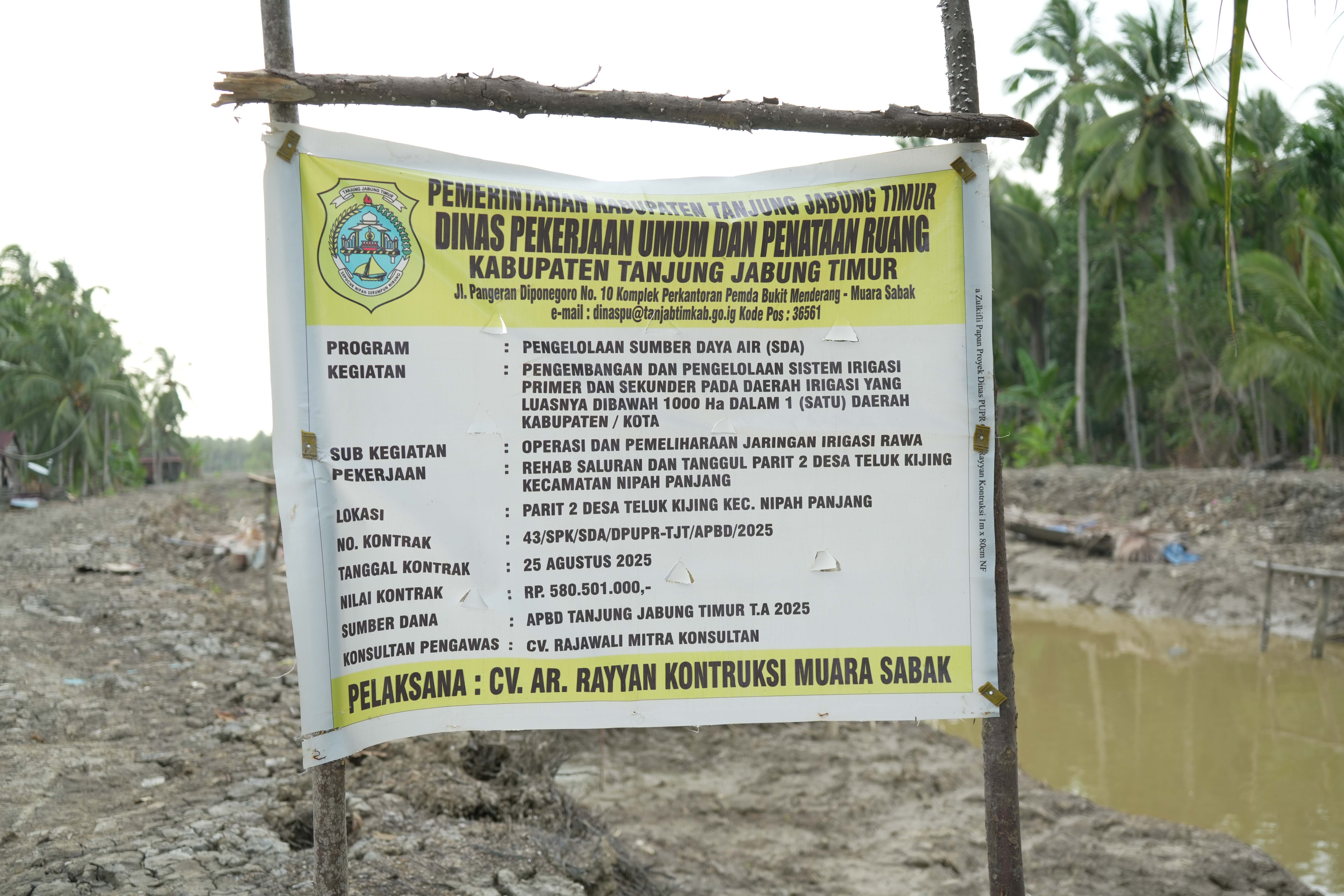 Selain itu, Bupati dan Wakil Bupati juga meninjau hasil rehabilitasi saluran dan tanggul Parit 2 Desa Teluk Kijing yang telah dikerjakan pada tahun 2025, guna memastikan kualitas pekerjaan sesuai dengan perencanaan.