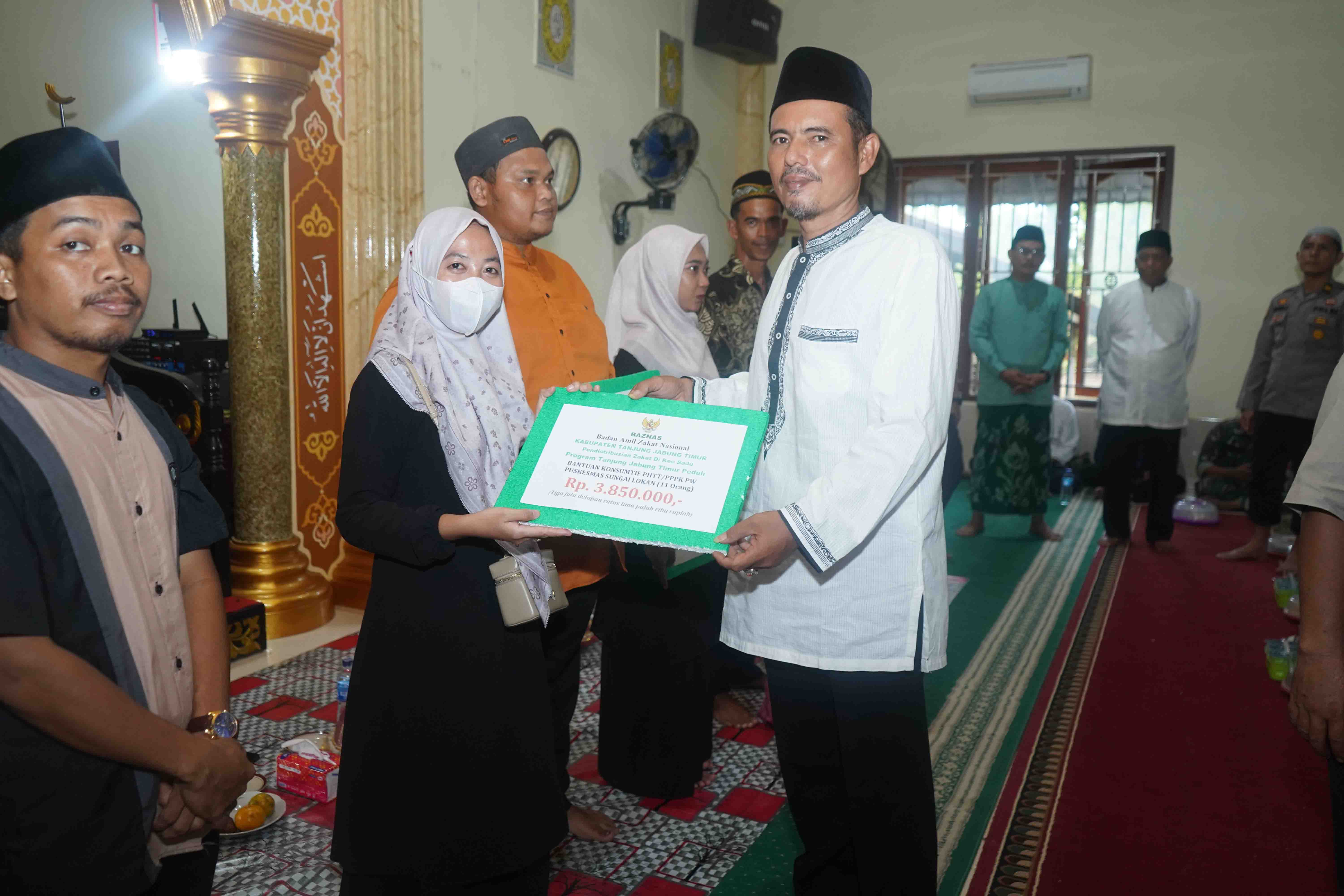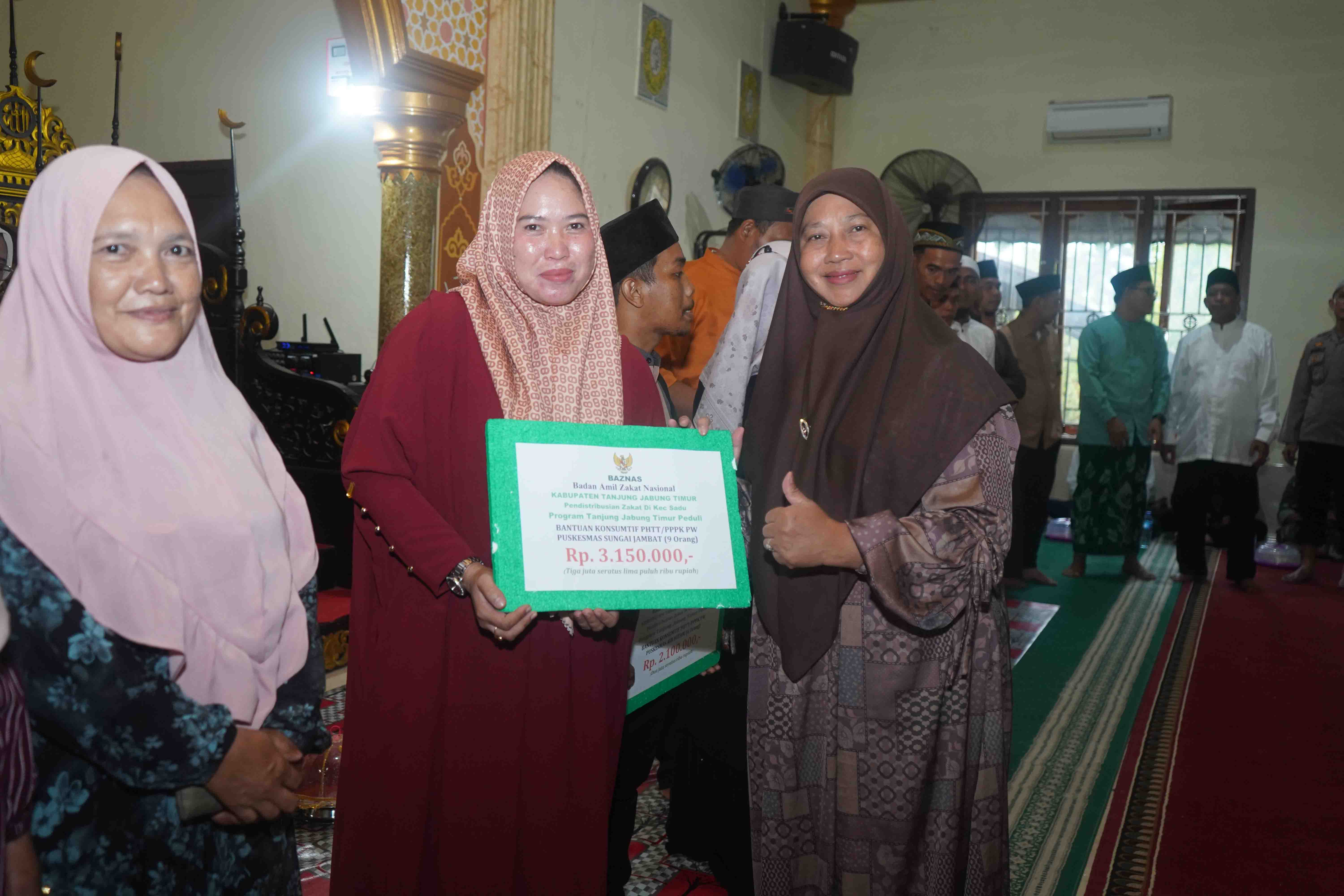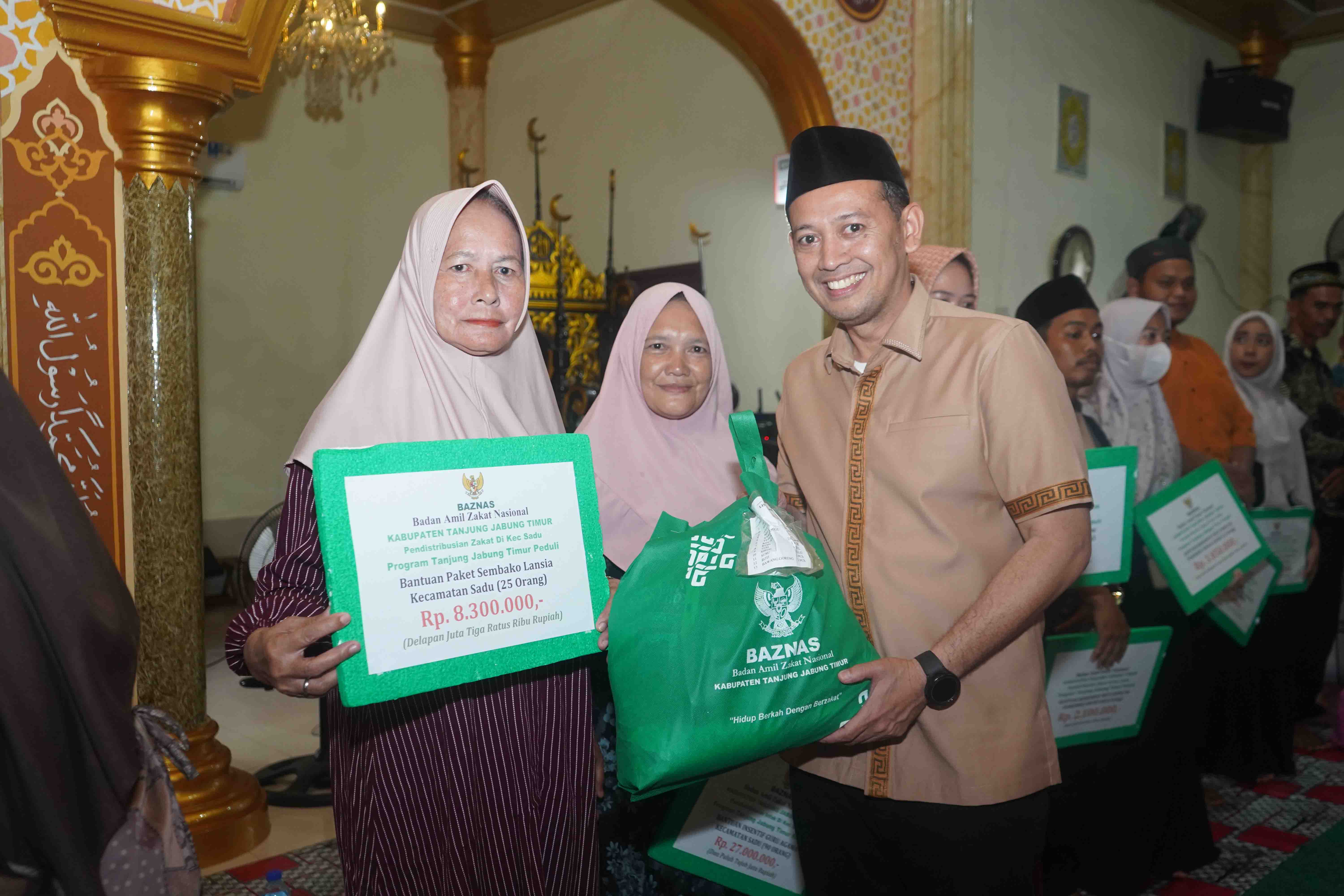 Dalam kesempatan tersebut, Pemerintah Kabupaten Tanjung Jabung Timur melalui Baznas Tanjung Jabung Timur menyalurkan berbagai bantuan kepada masyarakat di Kecamatan Sadu dengan total nilai Rp102.700.000.